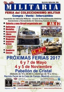 El próximo sábado 4 y domingo 5 de Noviembre se celebrara en el pabellón de Cristal en el recinto ferial de la Casa de Campo la XLIX edición de la Feria de Antigüedades «No sólo Militaría». Se trata de la mayor Feria celebrada en España de Antigüedades Militares, Concentración de Vehículos originales de época, Grupos de Reconstrucción Histórica, Asociaciones de Veteranos de nuestras Fuerzas Armadas y Zona Airsoft.