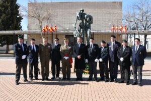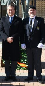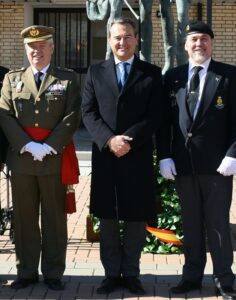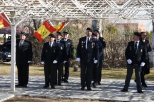 SE INICIA EL ACTO A LOS CAIDOS, DE TODOS LOS TIEMPOS. SALIENDO DE FORMACIÓN LOS GUIONES Y BANDERINES PARA LA COLOCACIÓN DE LA CORONA DE FLORES DELANTE DEL MONOLITO DE LOS CAIDOS, INICIANDOSE EL HIMNO “LA MUERTE NO ES FINAL”, A LA CONCLUSIÓN DEL MISMO SE DIRIJEN AL MONOLITO EL SECRETARIO DE ESTADO Y EL TTE GENERAL MONTAÑO PARA COLOCAR LA CORONA DE FLORES, DEPOSITANDOSE SOBRE LOS PIES DEL MONOLITO DE LOS CAIDOS POR ESPAÑA.