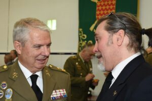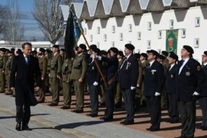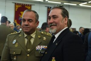 EL CAPITAN DEL ESCUADRON SE DIRIJE A DAR NOVEDADES AL SECRETARIO DE ESTADO PARA QUE PASE REVISTA A LAS FORMACIONES ALLÍ PRESENTES. EN LA QUE SE ENCUENTRA LA ASOCIACIÓN DE VETERANOS DEL VILLAVICIOSA 14, (CON LA PRESENCIA DE COMPAÑEROS DE LA ASOCIACIÓN DE GUARDAS CIVILES EVENTUALES Y LA HERMANDAD DE VETERANOS DE LA BASE AEREA DE CUATRO VIENTOS Y TRASMISIONES ),UNA VEZ REALIZADA LA MISMA , EL SECRETARIO DE ESTADO CON EL TTE GENERAL MONTAÑO SE DIRIJEN HASTA DONDE SE ENCUENTRA EL PERSONAL MILITAR Y CIVIL PARA DARLE LA BIENVENIDA POR SU ASISTENCIA A ESTE EVENTO.