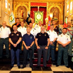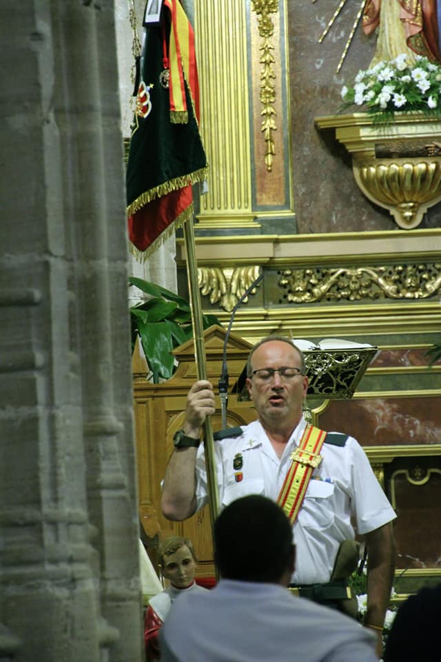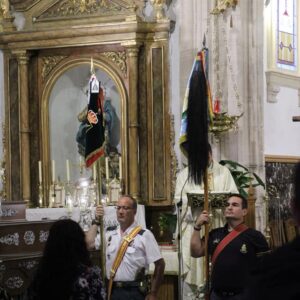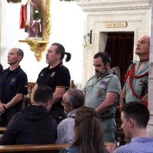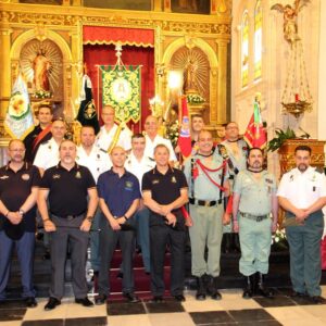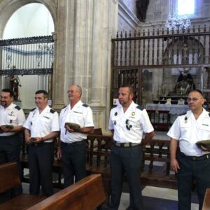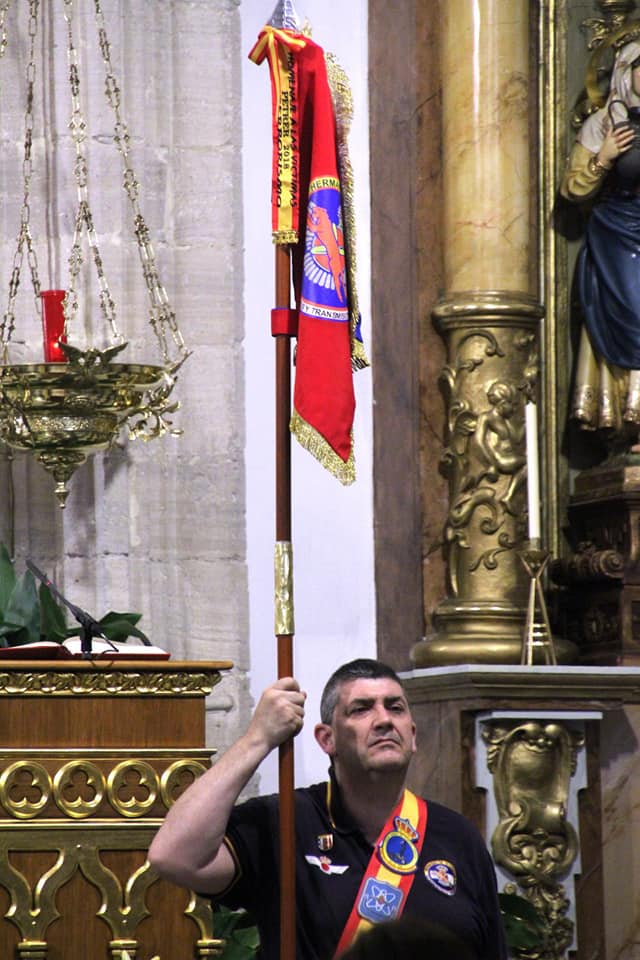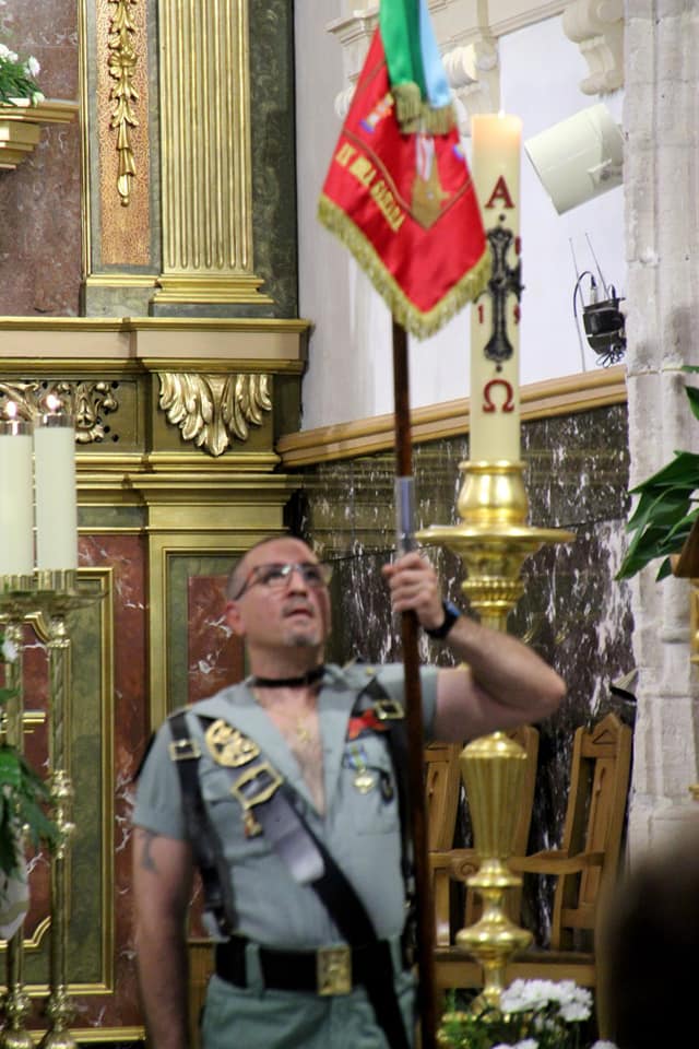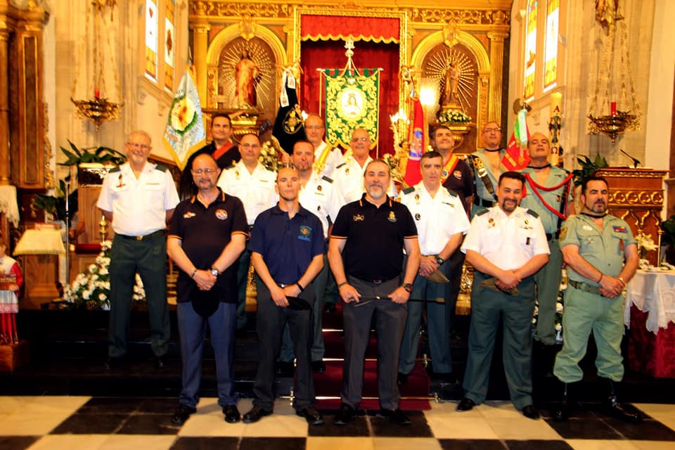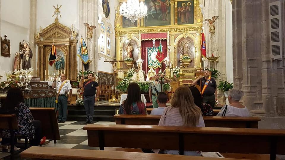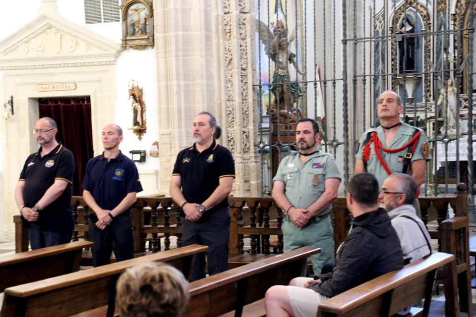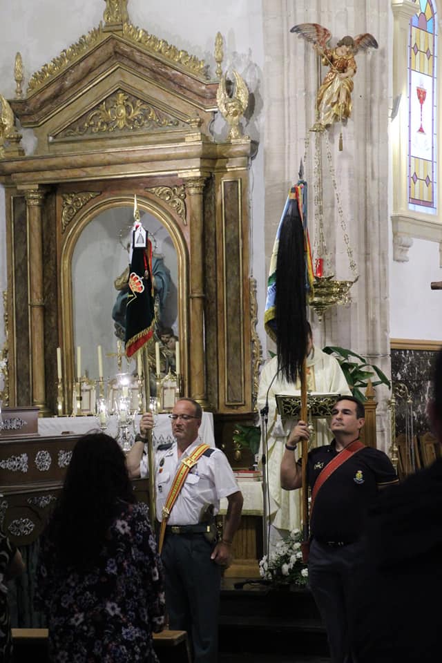 LA HERMANDAD DE GUARDIAS CIVILES AUXILIARES, ASOCIACION DE VETERANOS RCLAC ¨VILLAVICIOSA 14¨ , HERMANDAD DE CUATRO VIENTOS Y TRANSMISIONES Y LOS HERMANOS LEGIONARIOS en la iglesia Parroquial San Martín Obispo en Lillo (Toledo).