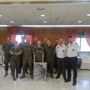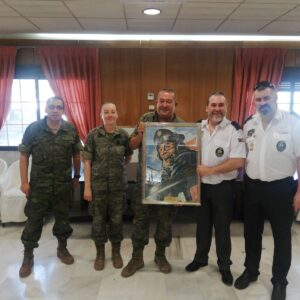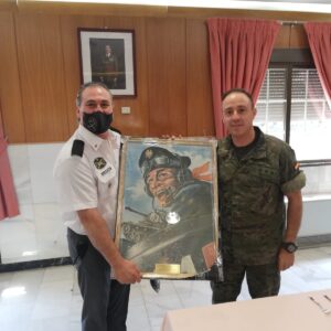 En el Acuartelamiento General Cavalcanti, , jefe de dicha unidad, de caballeria y rodeado de amigos jinetes. Hemos recibido un impresionante regalo, un carrista de los de hace años, con su placa identificativa.